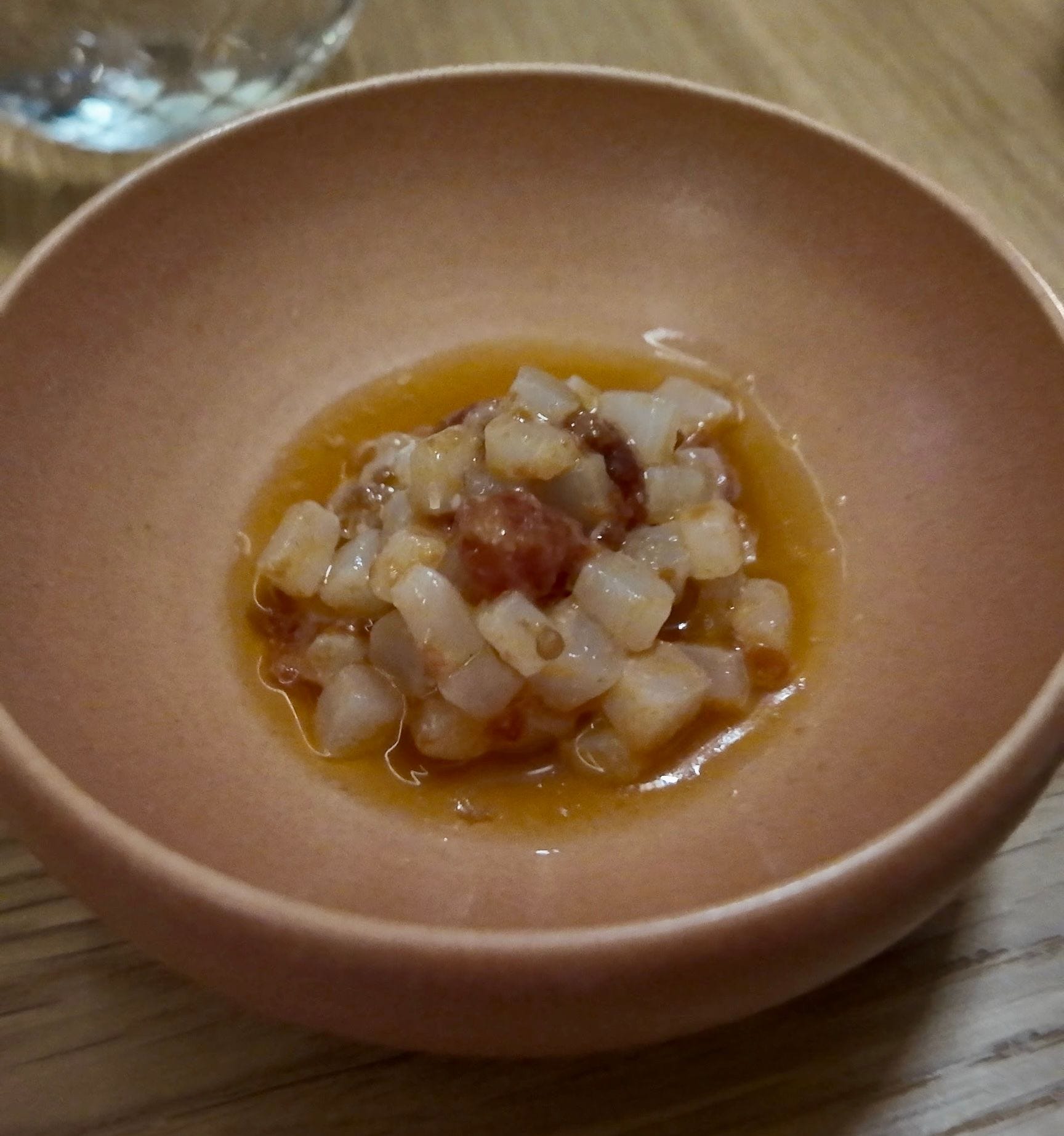 A surprising dish and a highlight of the meal. The rose added elegance while the tomato provided structure. “Oh wow, okay. This is gonna be really good.”