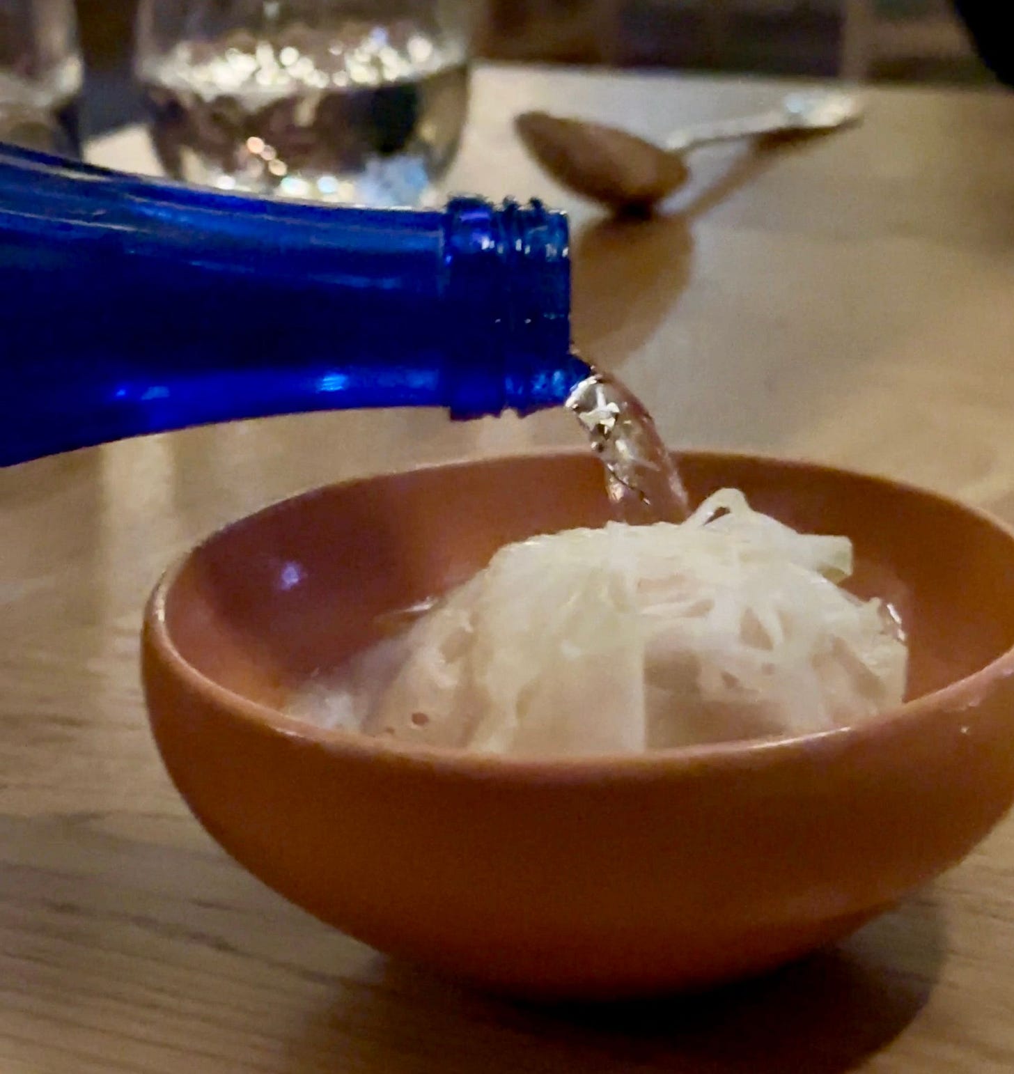 2 Pears sorbet, rose marinated cedrat, sparkling sake