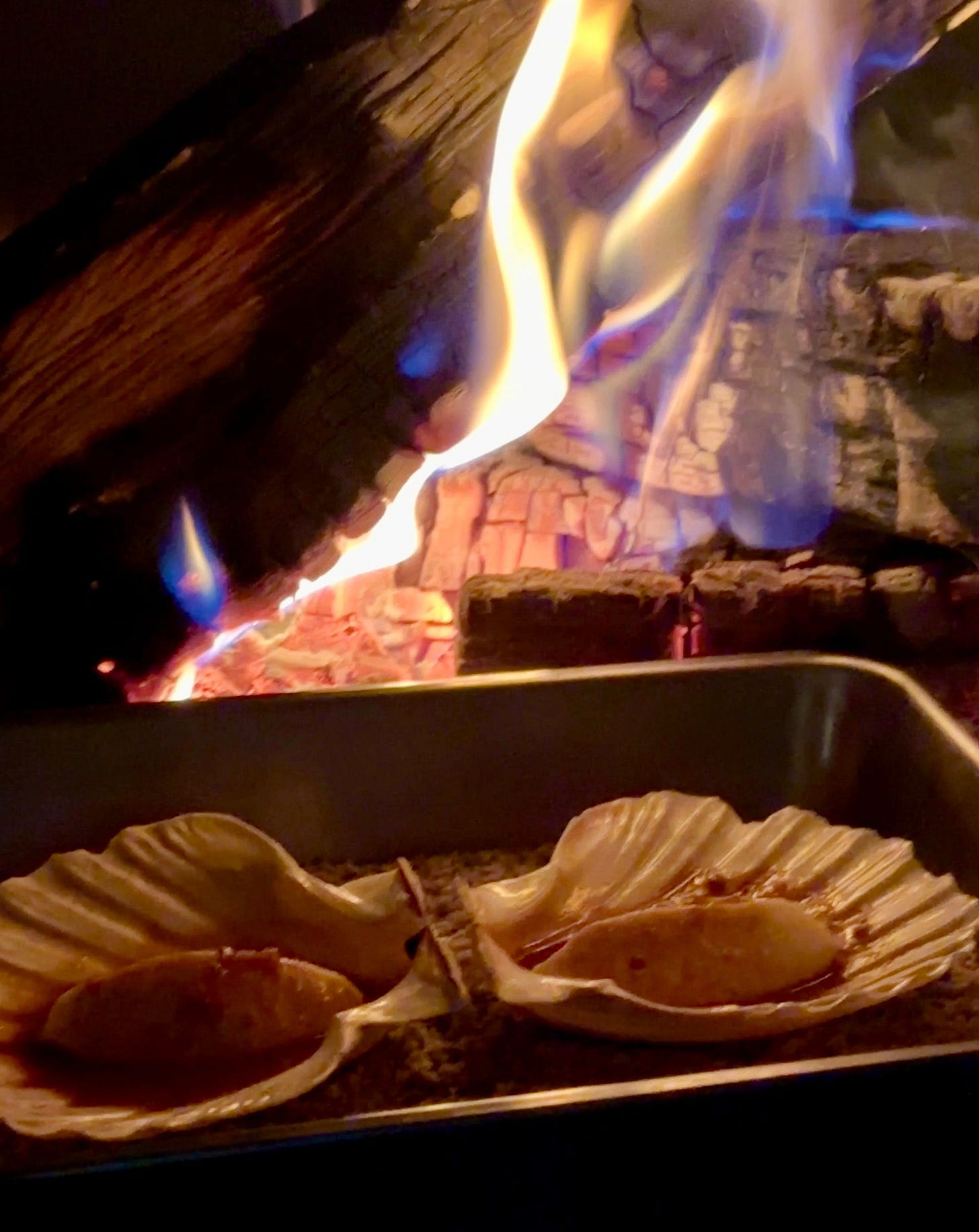 I nearly hacked up a lung when we arrived at the start of dinner service for our reservation. Quentin, the co-owner and sommelier, seated us right next to the open kitchen whose ventilation system was clearly malfunctioning. That’s not exactly what you want to happen when you cook over a wood fire, but Quentin and Chef Marcin seemed very relaxed about the situation, and not at all worried about our comfort or ability to breathe.
