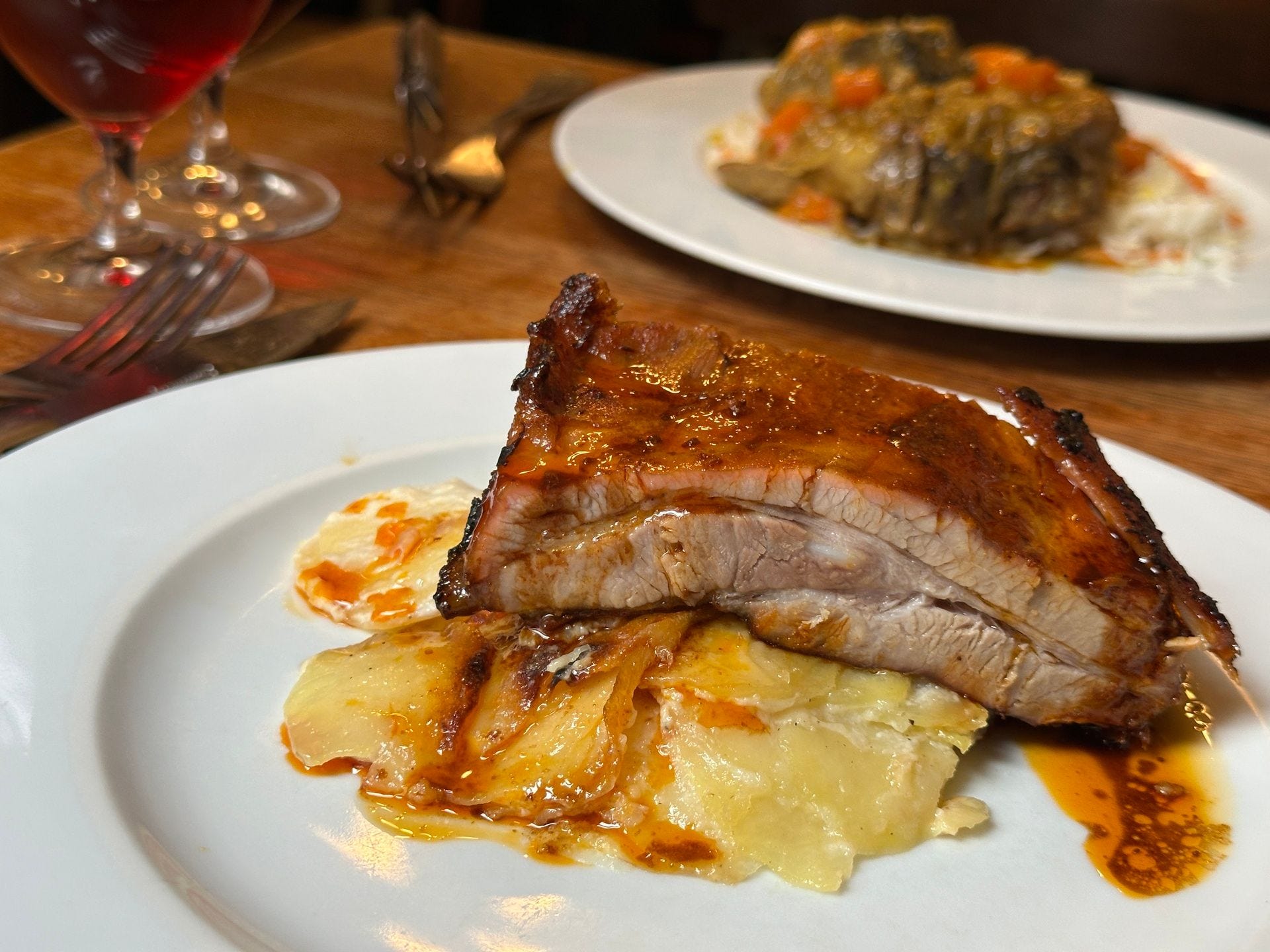 Our mains, too, were “ugly-delicious,” a refreshing aesthetic in a world where most restaurants are too concerned with visuals to remember the essentials. Pork juice and paprika seeped out of the steaming rib into my decadent potatoes, gratin dauphinois. The rib was tasty and succulent, albeit a bit chewy. Food for the soul.