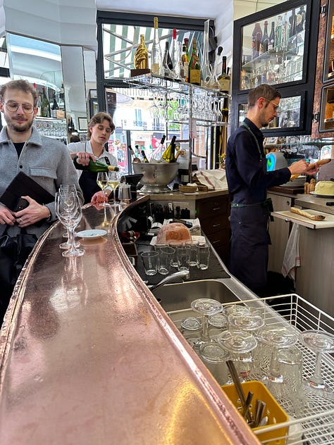 Simply put, I was intimidated. That’s it. The guys (it’s often, but not always, guys) eating and drinking at bistrot bars always looked so damn cool. So local. So comfortable. They lean against the counter as though they had been placed there by Haussmann himself. If I were to pull up beside them, I thought, they’d spot the imposter in an instant.