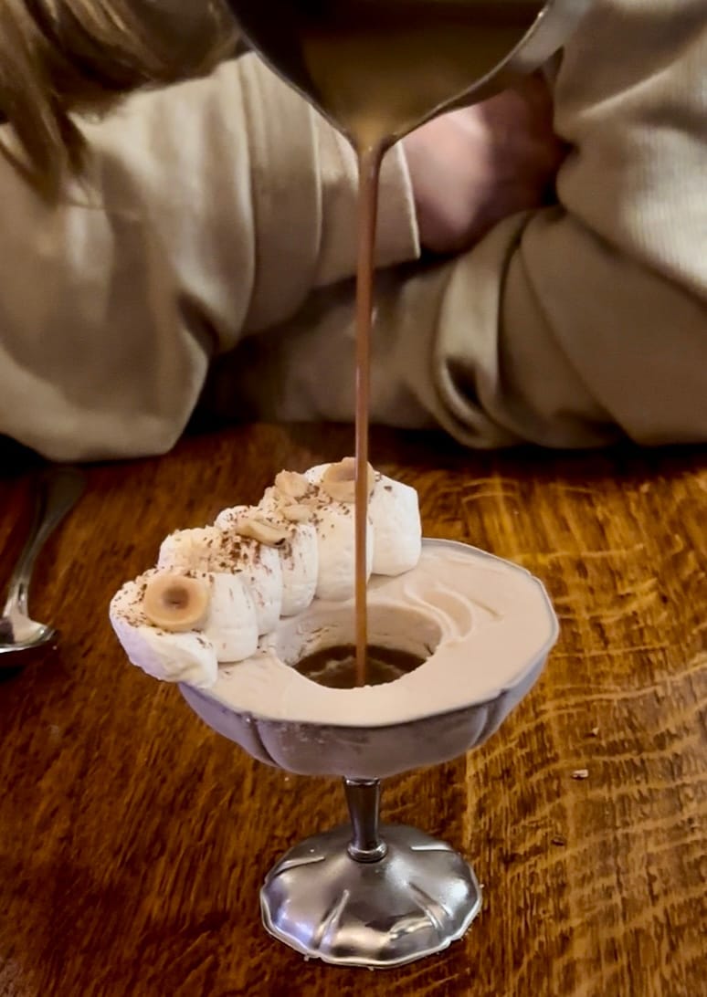 After dinner, we couldn’t resist the alluring affogato served up in an ornate stainless steel coupe, into which our server poured a hot stream of espresso. And while we may have worried, at first, about the caffeine ruining our REM, we slept peacefully, sedated by satisfaction.