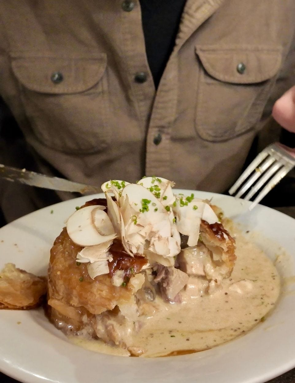 Quedubon specializes in offal delicacies, like poached veal brain with lemon butter and capers, but there are still plenty of options for those who don’t wish to stray too far from the noble cuts. The vol-au-vent, with morteau (smoked sausage), pork belly, and guinea fowl, was the best I’ve ever had; while our desserts, a bruléed cassis tart with crème crue and a clementine montblanc, were simply delightful.
